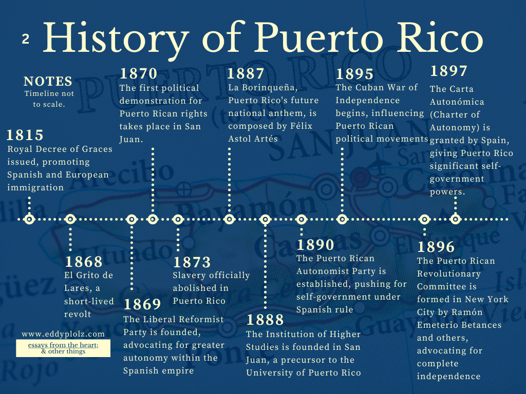 if you need a refresher (and let's face it, after this long, we all do), check out our first episode on the colonization of puerto rico. i also do a quick refresher later in this with some fancy little timeline graphics i put together for you. yes, yesβ¦ youβre very welcome.