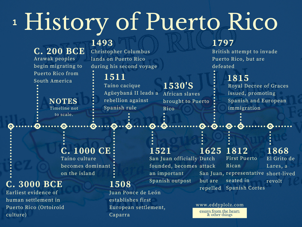 if you need a refresher (and let's face it, after this long, we all do), check out our first episode on the colonization of puerto rico. i also do a quick refresher later in this with some fancy little timeline graphics i put together for you. yes, yesβ¦ youβre very welcome.