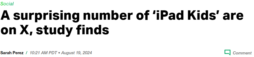 why it's making me spiral: hold onto your hashtags, mi gente. techcrunch just dropped a bomb about our "ipad kids". apparently, 30% of 7- to 9-year-olds are on x (formerly twitter), 28% are redditors, and 26% are facebooking. i'm sorry, what?